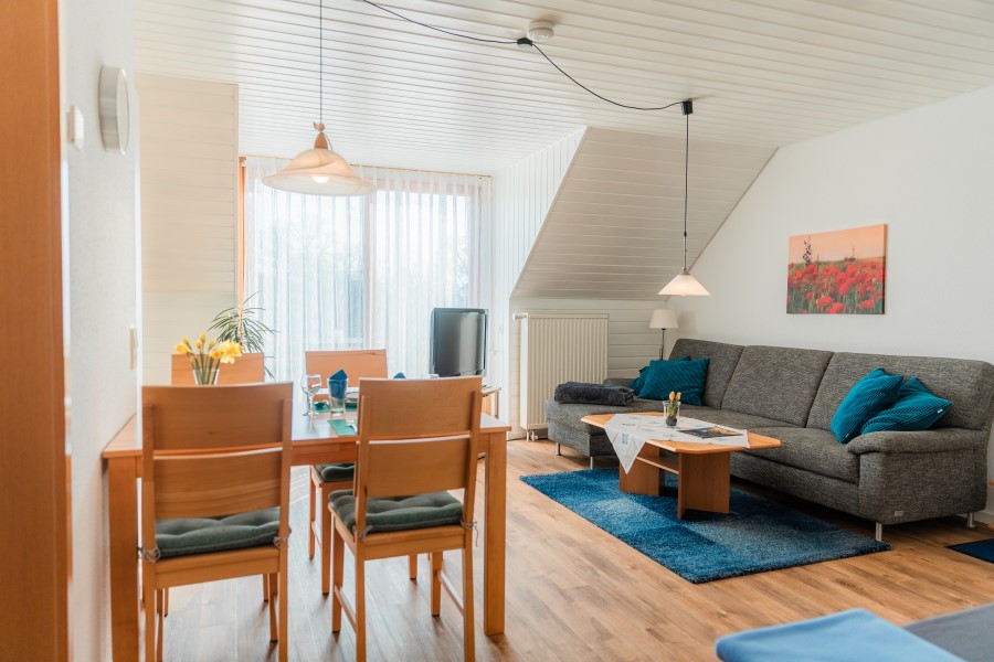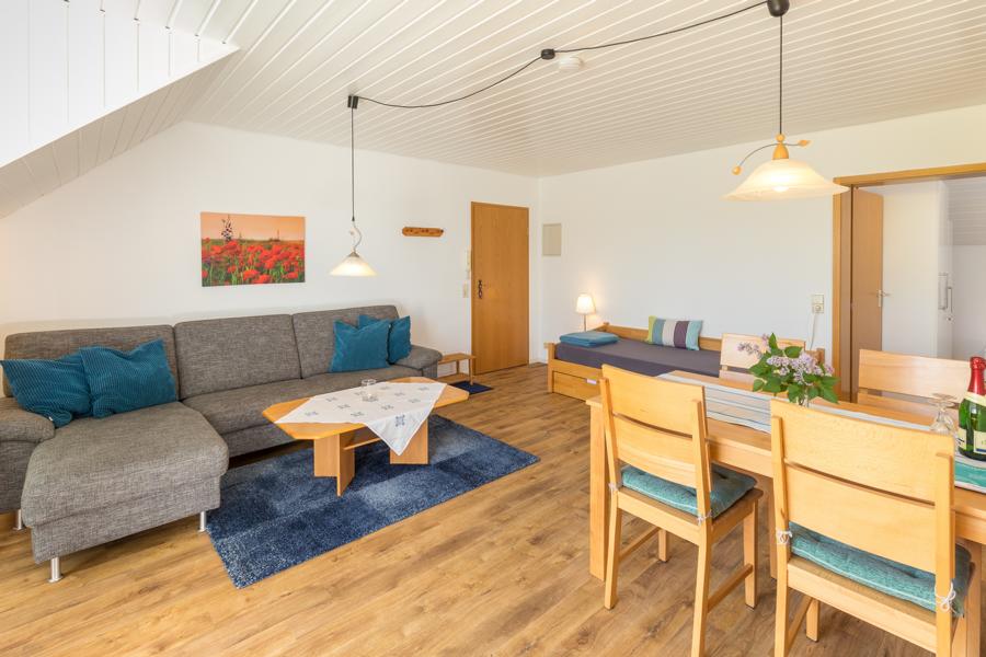 Die ca. 50m² große 2-Zimmer-Wohnung mit Ost-Balkon bietet Platz für 1-3 Personen. Ein Schlafzimmer mit Doppelbett und im Wohn-/Schlafzimmer ein Bett für eine Person.