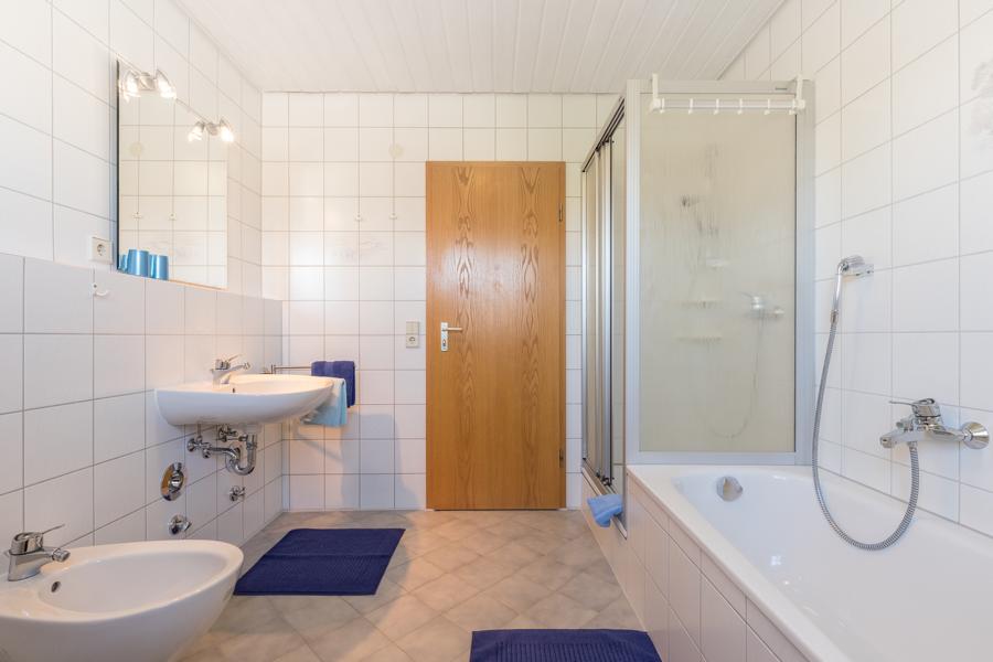 Das Tageslicht-Bad verfügt über Dusche, Badewanne, Bidet, Waschbecken und WC.