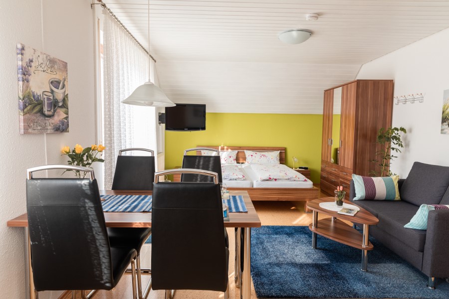 Die ca. 35m² große 1-Zimmer-Wohnung mit Süd-Balkon bietet Platz für 2 Personen. Wohn-/Schlafzimmer mit Doppelbett.